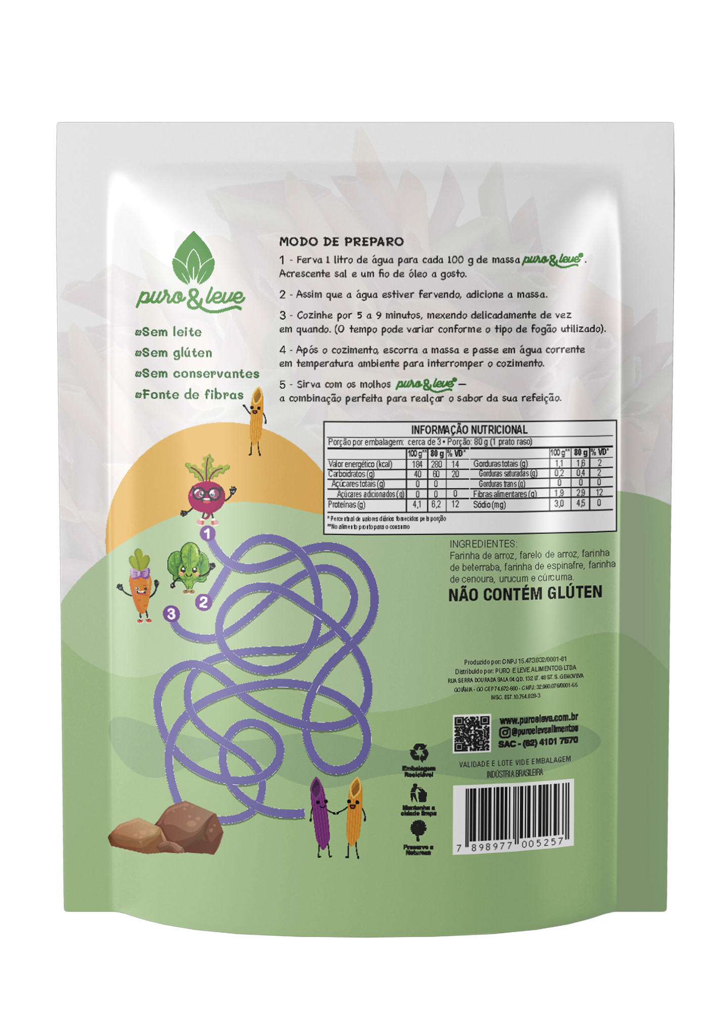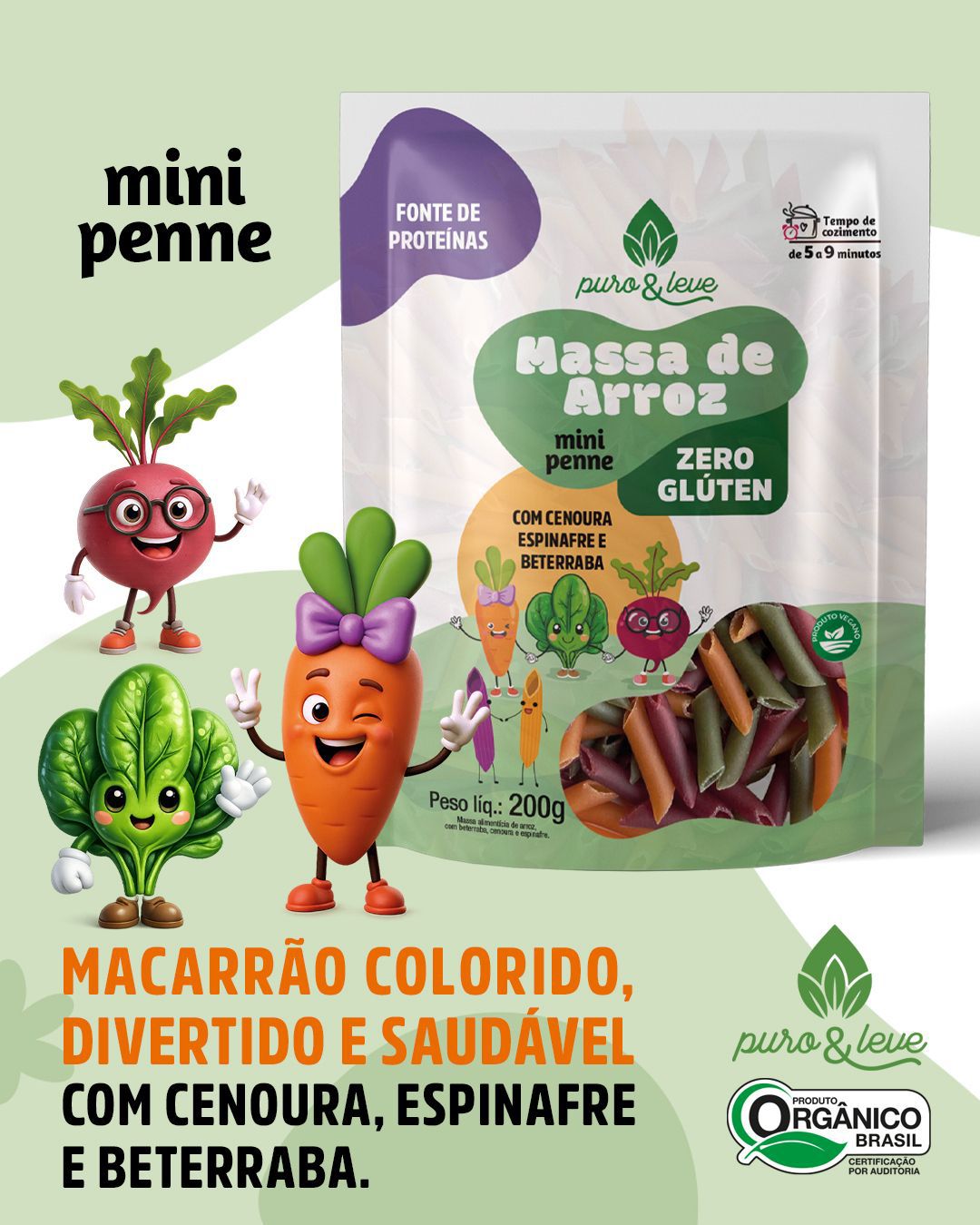 A Massa de Arroz Mini-Penne da Puro&Leve® foi desenvolvida para tornar as refeições do dia a dia mais leves, práticas e nutritivas. Produzida à base de arroz e vegetais, ela combina simplicidade nos ingredientes com um formato pensado para facilitar o consumo, especialmente pelas crianças.