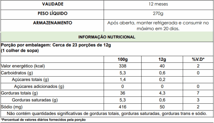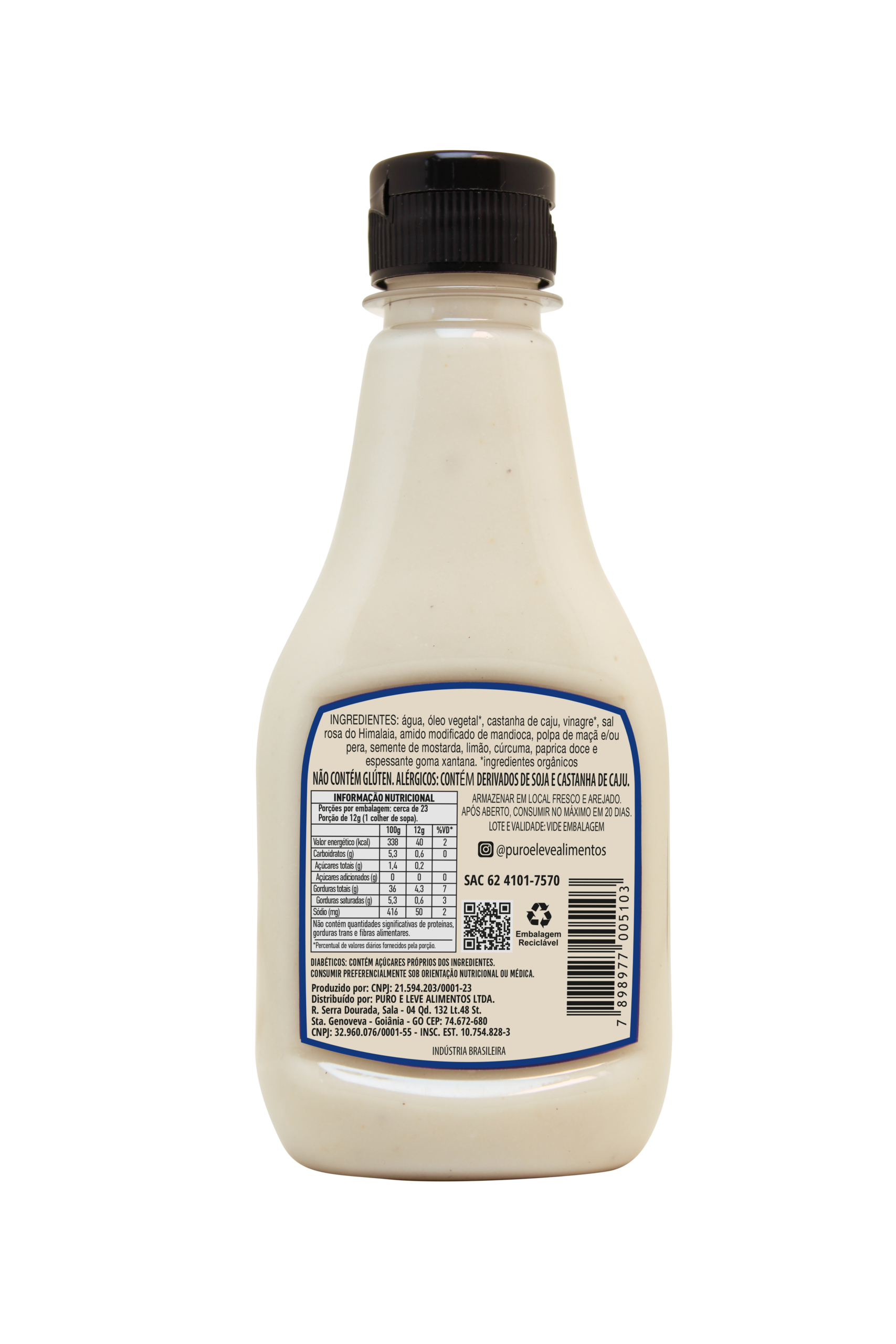 Água, óleo vegetal*, castanha de caju, vinagre*, sal rosa do Himalaia, amido modificado de